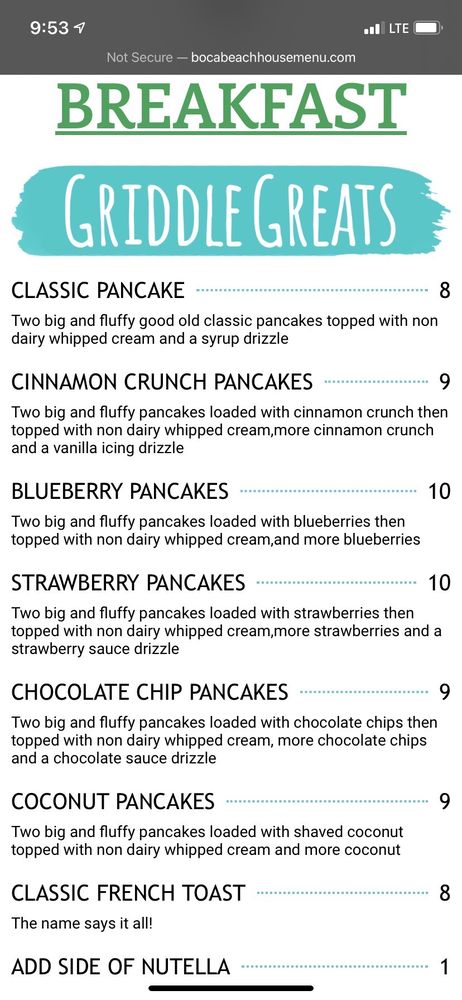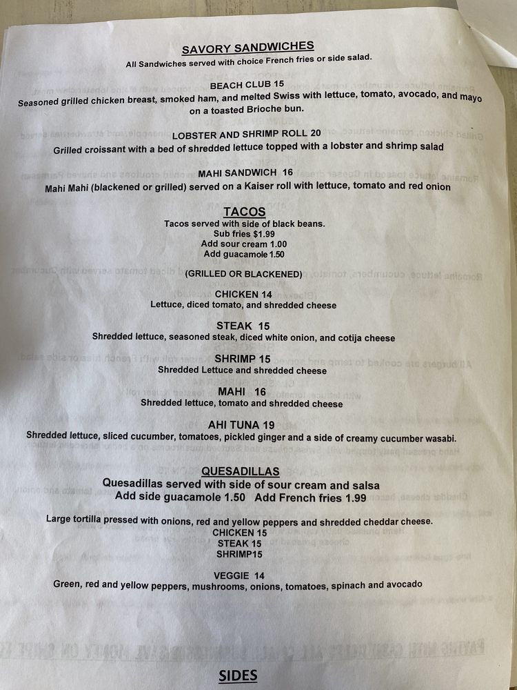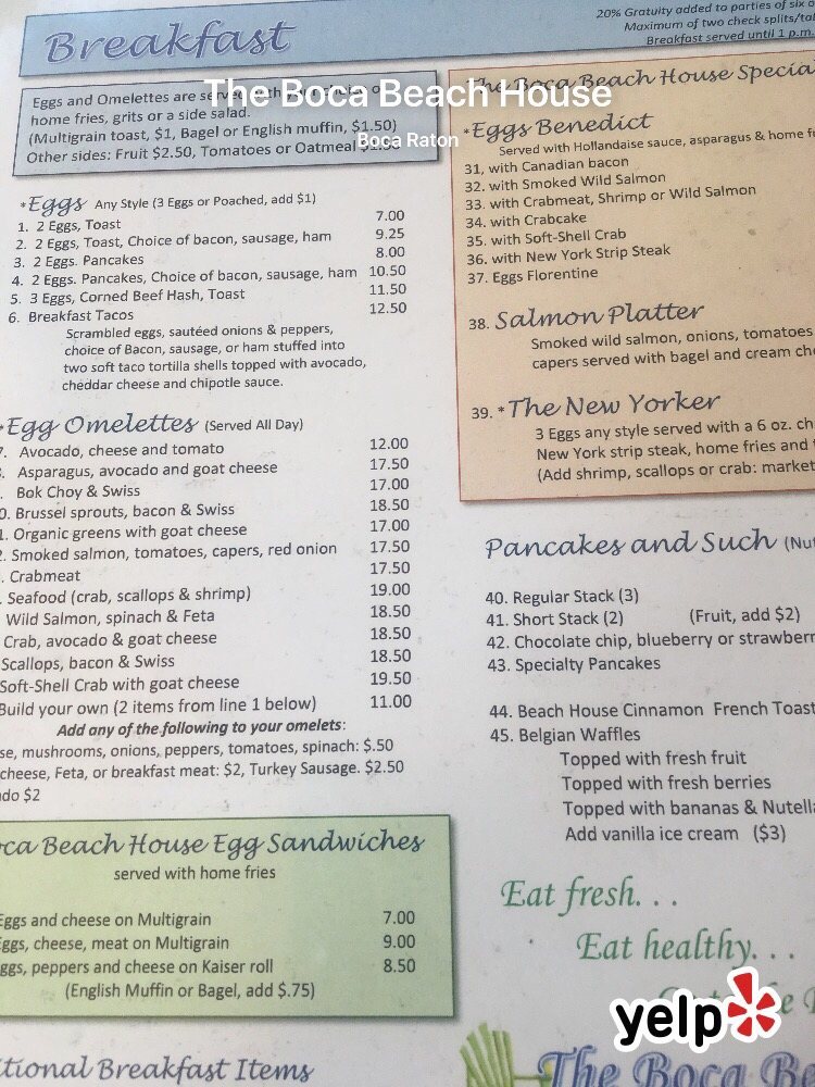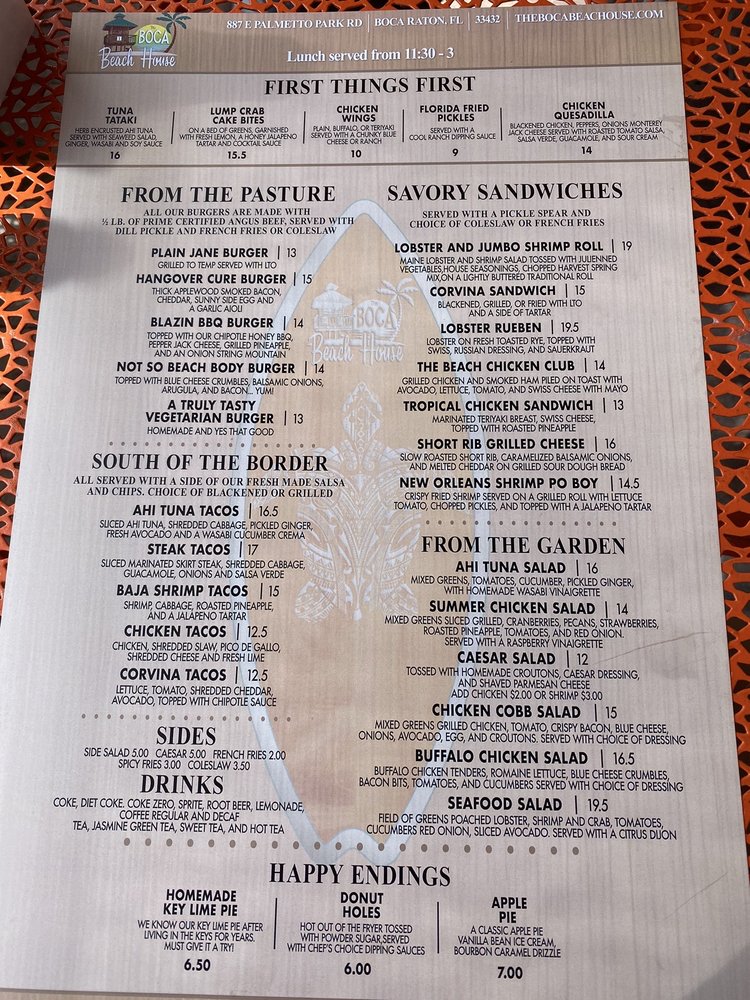 The Boca Beach House Menu